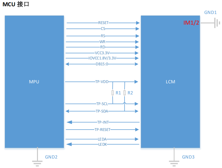 စက်မှုလုပ်ငန်းတူရိယာများနှင့်အိမ်သုံးပစ္စည်းကိရိယာများကဲ့သို့သောအလတ်စားမြန်နှုန်းမြန်သော application များတွင် MCU interface သည် 8/16/18-bit mode များအတွက်ပြောင်းလွယ်ပြင်လွယ်ထောက်ခံမှုကြောင့်လူကြိုက်များသည်။ တိကျသောအချိန်ကာလကို CS, WR နှင့် RD ကဲ့သို့သောအချက်ပြမှုများကိုထိန်းချုပ်ခြင်းသည်အရေးပါသည်။ ဤအချက်သည် LCD module ၏နောက်ခံအလင်းရောင်စနစ်ပေါ်တွင်တောင်းဆိုမှုများကိုပိုမိုမြင့်မားသောတောင်းဆိုချက်များကိုပြုလုပ်သည်။ ၎င်းသည်အလွန်ကောင်းမွန်သော 0 င်ရောက်စွက်ဖက်မှုစွမ်းရည်နှင့်တည်ငြိမ်မှုကိုပိုင်ဆိုင်ရမည်။ ဤအချက်သည်အဆက်မပြတ်အသွင်ကူးပြောင်းမှုများ၌ TFT မျက်နှာပြင်ပေါ်ရှိအဆက်မပြတ်မြင်ကွင်းပေါ်ရှိ flicker-flight backlight display ကိုအာမခံသည်။