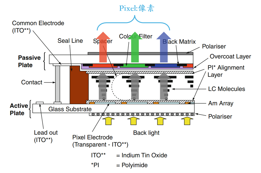 LCD (အရည်ကြည်လင်ပြတ်သားမှု) သည်ရင့်ကျက်သောအရောင်းအ 0 ယ်နှင့်ကျယ်ကျယ်ပြန့်ပြန့်လက်ခံထားသောပြသမှုဖြေရှင်းချက်အရ, နောက်ဆုံးအနေဖြင့် pixel တစ်ခုစီ၏တောက်ပမှုကို Applied ဗို့အားမှတစ်ဆင့်အရည်ကြည်လင်မော်လီကျူးများကိုထိန်းချုပ်ခြင်းဖြင့်ချိန်ညှိထားသည်။ ဤလုပ်ငန်းစဉ်သည်အဓိကအစိတ်အပိုင်းများစွာ၏ညှိနှိုင်းဆောင်ရွက်မှုလုပ်ငန်းများအပေါ်မူတည်သည်။