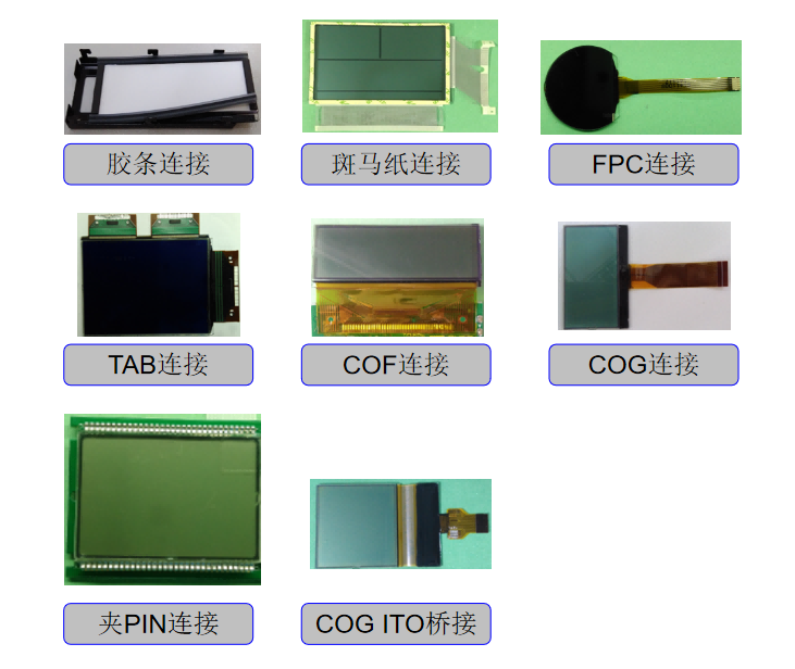 ထို့အပြင် connection method သည်အညီအမျှအရေးပါသည်။ ပိုမိုအဆင့်မြင့် FPC, tab နှင့် cof connections သို့ရိုးရာ zebra strip / elastomer ဆက်သွယ်မှုများမှပိုမိုအဆင့်မြင့် FPC, tab နှင့် count connection များထံမှသင် LCD မျက်နှာပြင်အစိတ်အပိုင်းများကို အခြေခံ. သင်၏ signd scransments and spatial consutents ကိုစိတ်ကြိုက်ပြုလုပ်သောအခါအကောင်းဆုံးလျှပ်စစ်ဆက်သွယ်မှုဖြေရှင်းနည်းကိုရွေးချယ်နိုင်သည်။