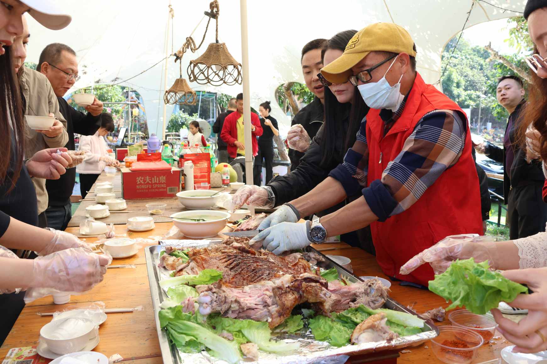 နေ့လယ်စာစားပွဲသည် အာခေါင်နှင့် ဝိညာဉ်အတွက် ပွဲဖြစ်သည်။ သိုးကလေးတကောင်လုံး၏ အကင်ရနံ့သည် စခန်းချရာနေရာ လေထုကို လွှမ်းခြုံကာ အစားအသောက်များ ဝေငှပြီး ပိုအရေးကြီးသည်မှာ တစ်နှစ်ကျော်သွားခဲ့သော ဇာတ်လမ်းများဖြစ်သည်။ ကိတ်တုတ်မျက်မှန်တပ်ခြင်းသည် တင်းမာသောအလုပ်စည်းချက်အား မိသားစုစုရုံးမှု၏ နွေးထွေးမှုနှင့် အပန်းဖြေမှုတို့ဖြင့် အစားထိုးခဲ့သည်။